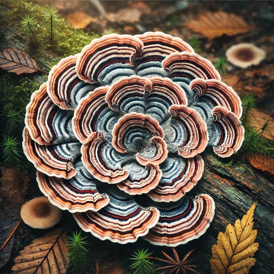Este hongo, conocido como “cola de pavo” por su forma y color, se encuentra en todo el mundo en troncos de árboles en descomposición.