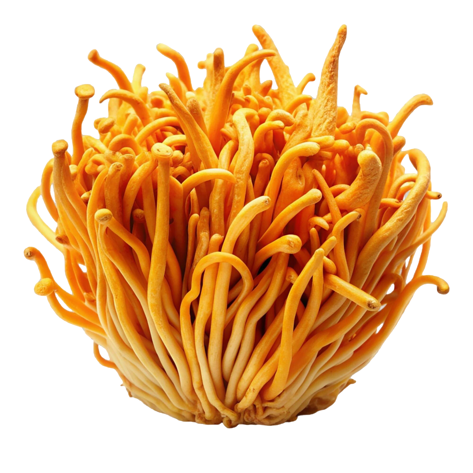 Un hongo único que crece naturalmente en altitudes elevadas en Asia. Aunque originalmente se encontró en larvas de insectos, hoy en día se cultiva de forma sostenible.